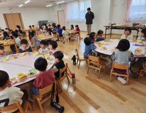 さて、素敵なお別れ会の後はみんなで給食を食べました。